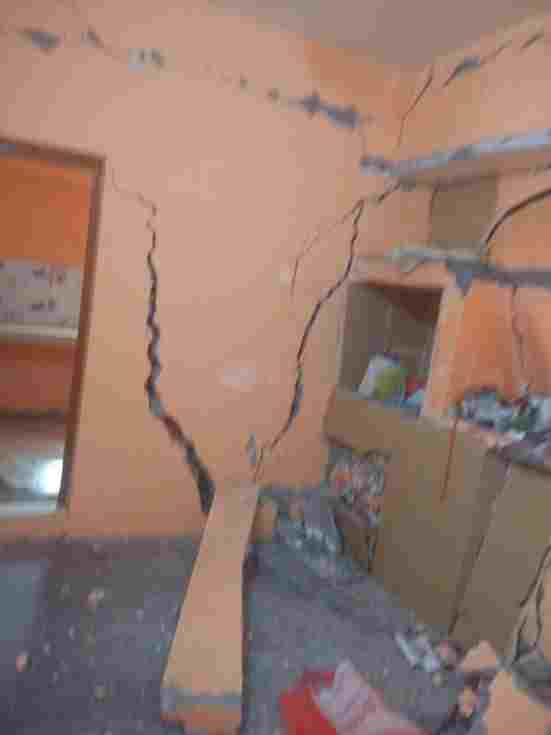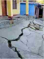 में दरार आवि गेल आ धरातल वा सड़क फाटए लागल । बहुतों घर - दीवार सभ में